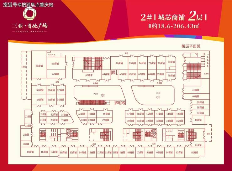 商铺建面约18.6-206㎡,层高4.5~6米