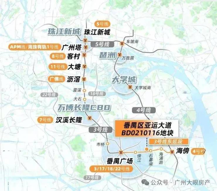距3号线的石基南站约500米,2站番禺广场;通过3号线无需换乘直达珠江新城,无缝对接18/22号线,实现3站万博CBD,4站广州南、琶洲CBD,5站珠江新城,半小时链接市中心,一小时畅行湾区。