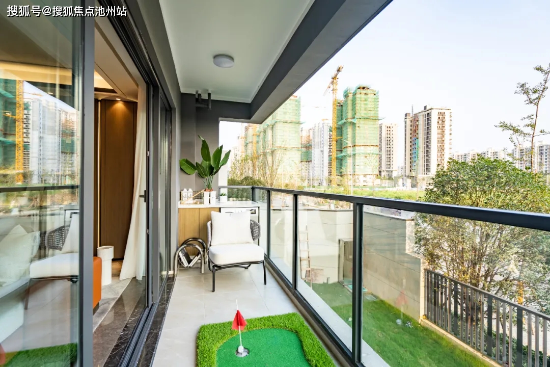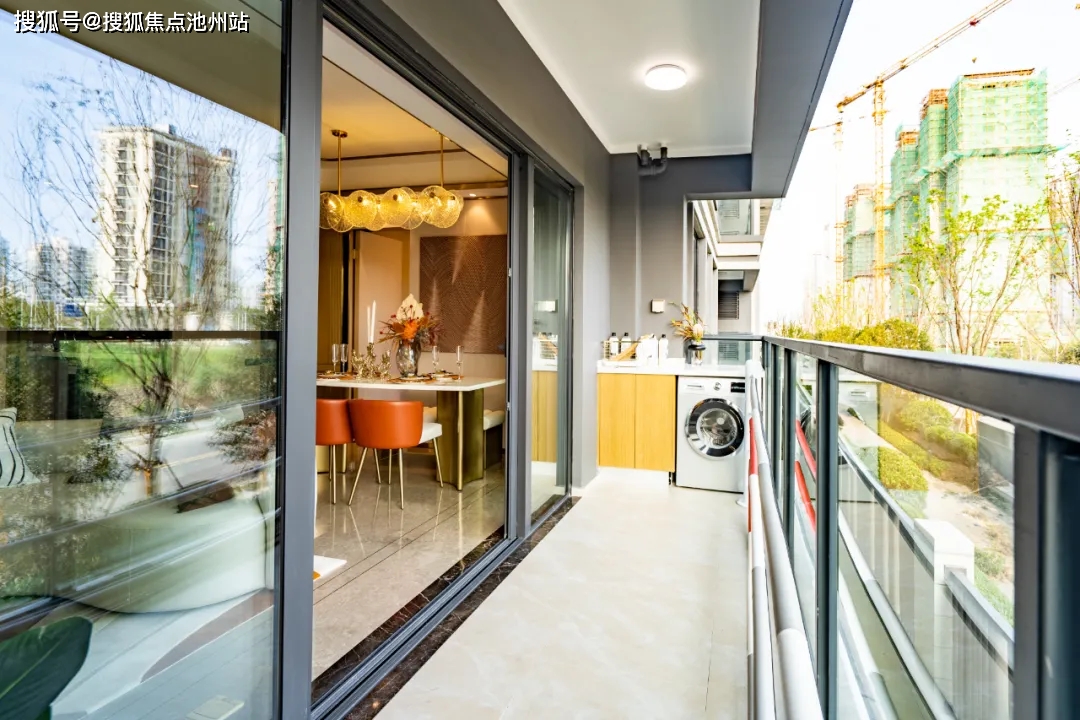 再看公区,南向宽厅足以容纳客厅+餐厅,让居者和亲朋欢聚、用餐时都能沐浴充足阳台,惬意非凡。