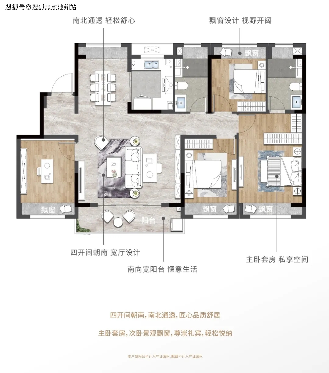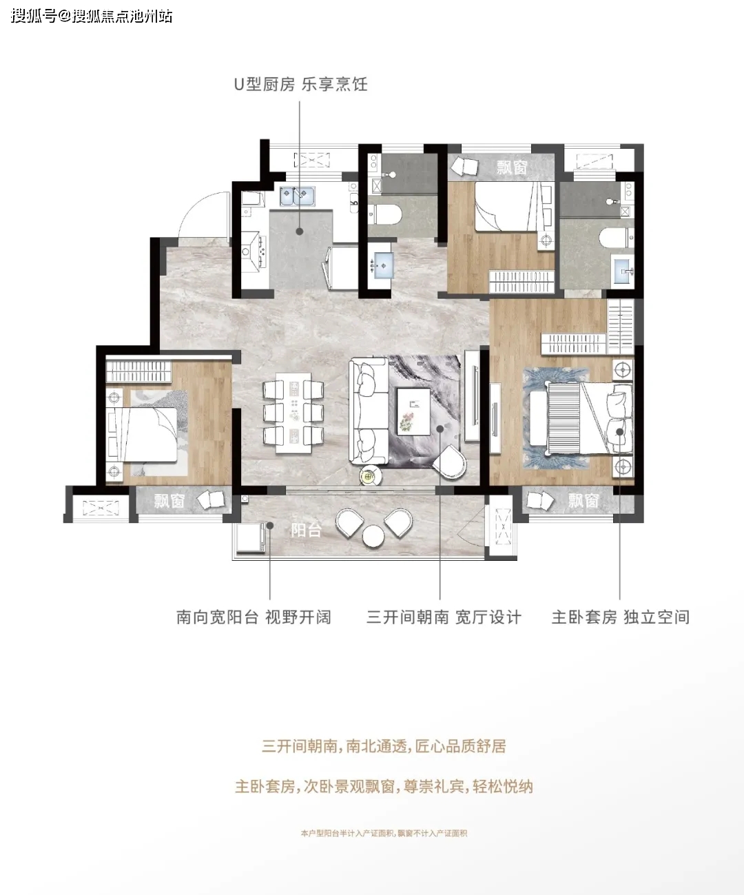 另外,该户型的所有卧室都附带飘窗,加上这个大尺度阳台,大大增加了室内的使用空间!