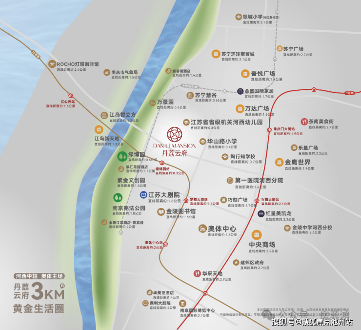 项目区位示意图(信息来源:建业播报、南京滨江公园公众号、南京中新科技生态岛公众号。温馨提示:本宣传对项目与周边环境、交通、公共设施及其他配套设施的展示,旨在协助提供相关信息,不视为本公司对此做出了承诺,建议客户自行实地考察以对附近区域及环境获得更全面的了解。市政规划和配套为政府行为,实际建设结果以政府最终批准文件为准。本资料对项目周边幼儿园、中小学校、大学等教育资源的介绍,旨在协助提供相关信息,并不视为本公司对学区安排作出承诺。教育资源的名称、办学性质、办学规模、学位设置、开学(班)时间、招生条件、收费标准及招生区域等信息,应以政府教育主管部门及办学方颁布的政策规定为准。距离根据百度地图测距计算得出。)