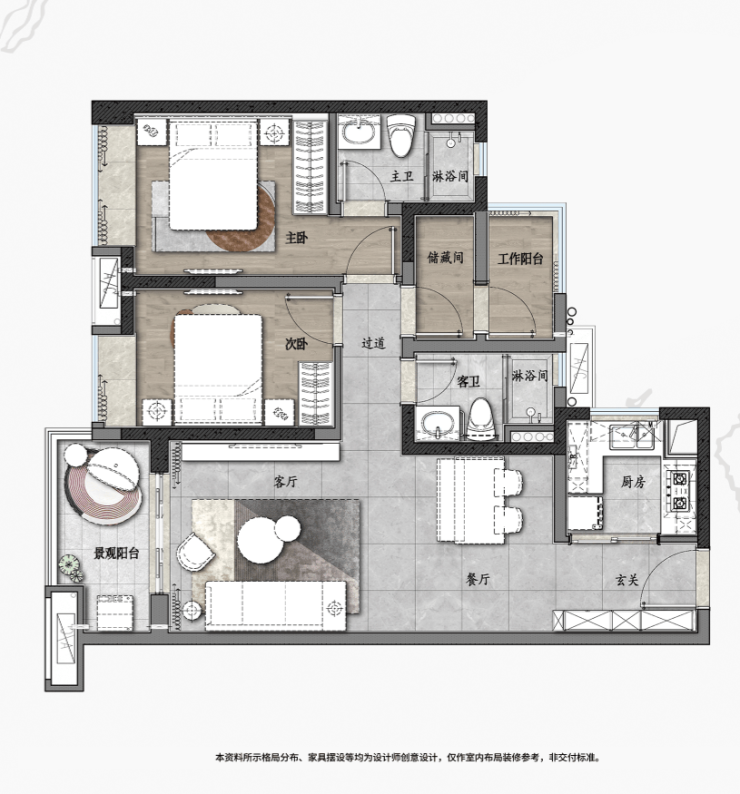 约三房带主套+望江/望园林+约3.3m开间阔厅