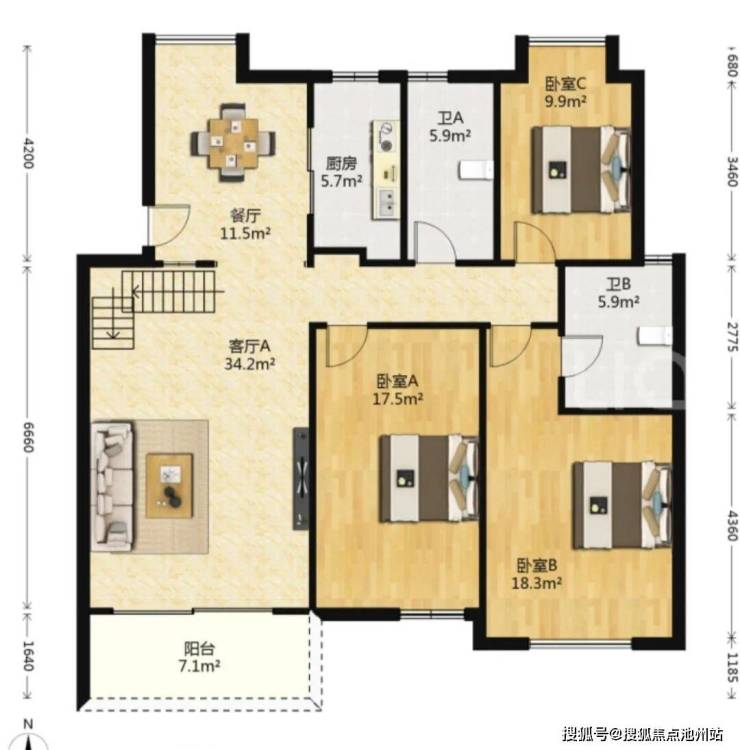 主卧套房开间达约4.4m,最小的房间也有约3.15m,还自带一个储藏室,非常适合“多孩大家庭”。