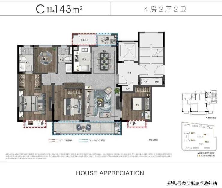 以建面约180㎡的四居户型为例,通过合理的空间布局,保证每一位家人都能拥有安静私密的尊享空间。