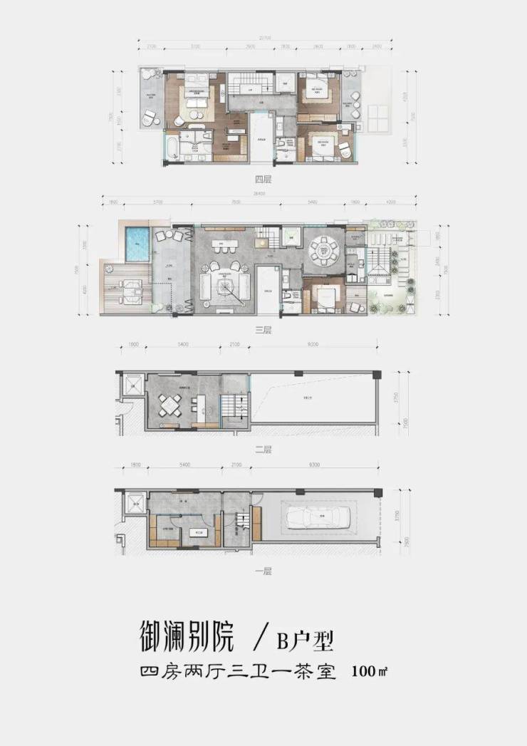 建筑面积68-82平米,实得144-280平,赠送花园面积:35-260平米,四房两厅三卫一书房。