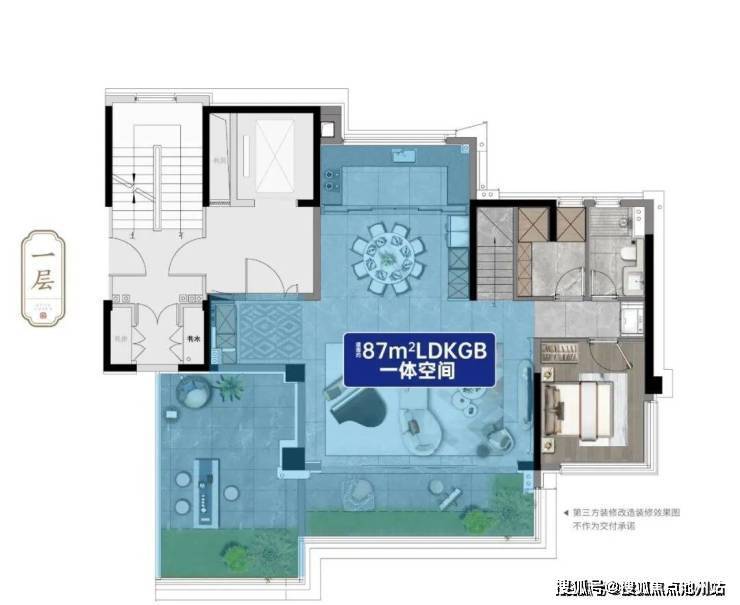 约87㎡的LDKGB阔厅是整个家的灵魂所在,洄游动线将多功能厅、奢阔餐客厅、L型花园露台等空间串联起来,让空间更有层次感,也更通透、开阔,实现多重自由。