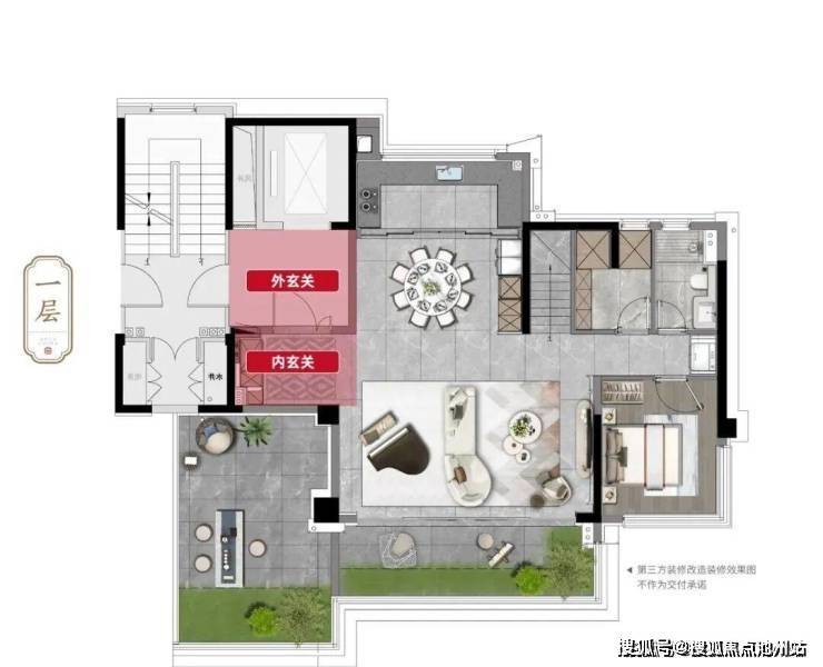更妙的是,独立玄关并非终点,而是与南向露台花园相连,形成一条“穿越风景的花园式归家动线”。
