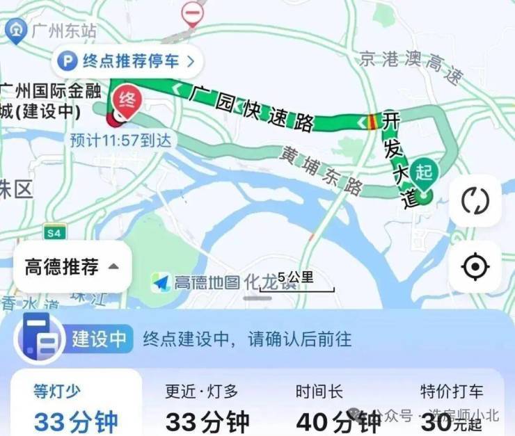 到金融城:走开发大道转广园快速,或者走黄埔大道去金融城,约20来公里,不堵车情况下,耗时33分钟左右。