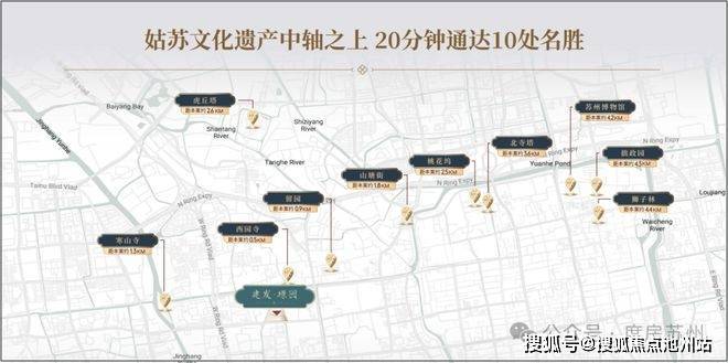 从建发璟园出发,仅约20分钟车程即可抵达苏州闻名世界的10处名胜古迹(如下图)!其中,西园寺、留园更是在1公里范围内,步行可达!