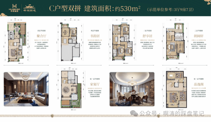 二期 建面约328-586㎡纯山景大宅(纯板式 餐客厅约4米层高 双阳台户型)