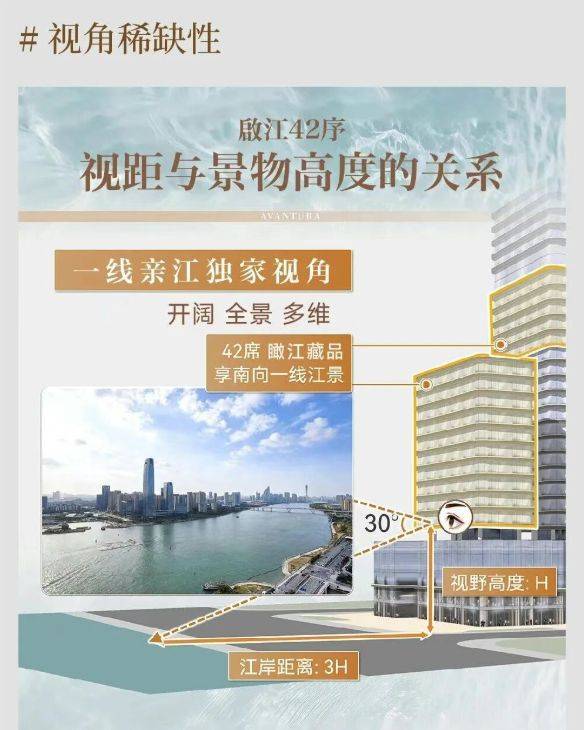 在寸土寸金的金融城,一线滨江住宅本就凤毛麟角,而啟江42序更以约110米的亲江距离,成为真正意义上的“零距离拥江”。项目南向瞰江,视野无遮挡,可一览约5000米珠江两岸的壮阔画卷。