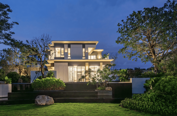 大面积落地玻璃,让原本厚重的墅居难得通透、轻盈。
