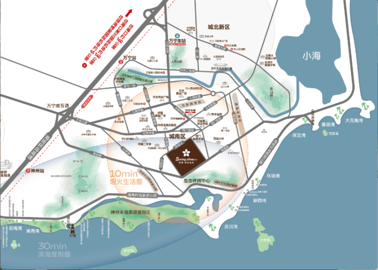 从项目开车10分钟可达万宁高铁站、10分钟到达高速口、12分钟可达万宁汽车站,轻松链接各大交通枢纽,3小时通达全岛。