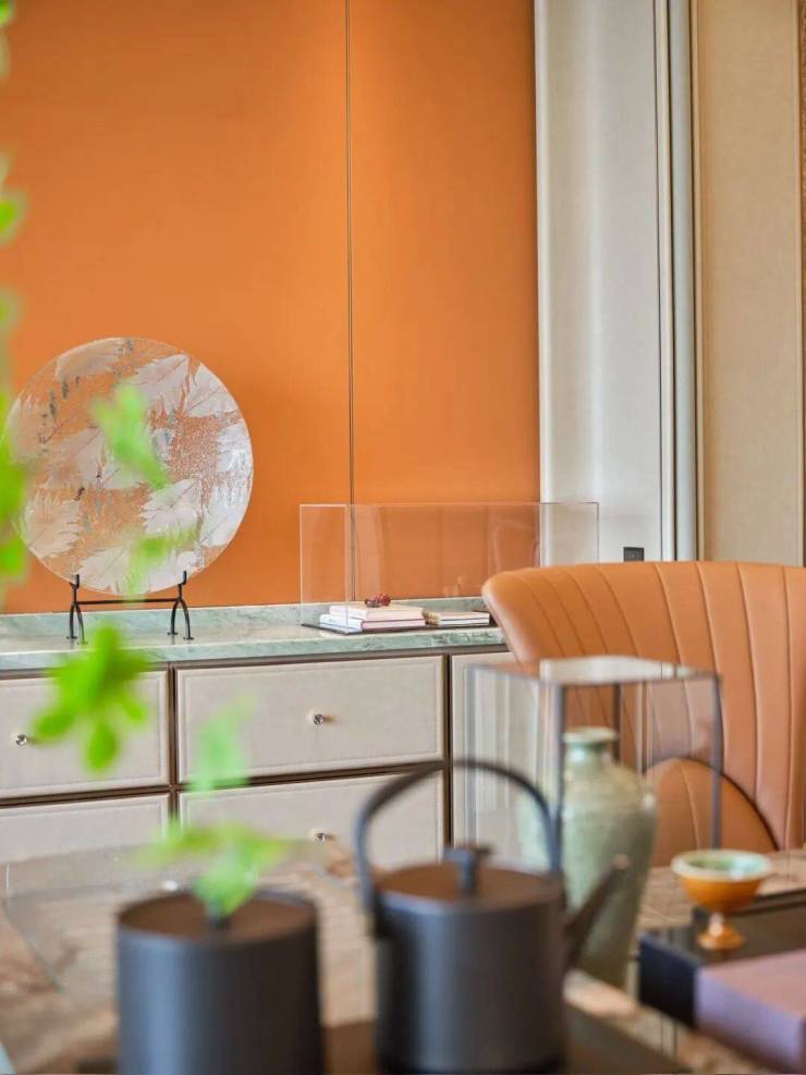 ✨鳄鱼皮编织纹墙布背景搭配鎏金翡翠奢石,通透飘逸,奢贵内敛。