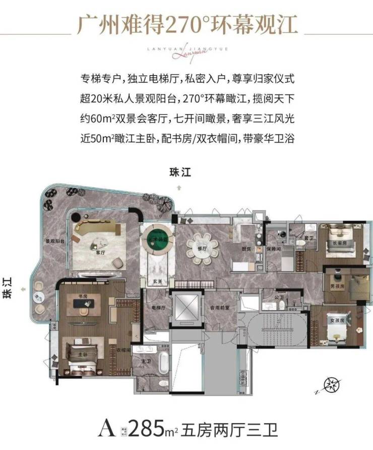 【产品面积】:约193㎡/285㎡瞰江艺术大宅