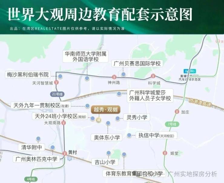 项目配建800方托儿所和15班幼儿园和24班小学其中24班小学引进广州天河外国语教育集团合作办学,2026年9月份开学。隔壁缦云也还有一所九年制的广外在建,45班中学。