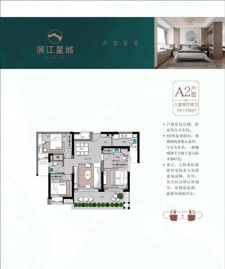 产品面积:110-129㎡三房两厅 板式大宅