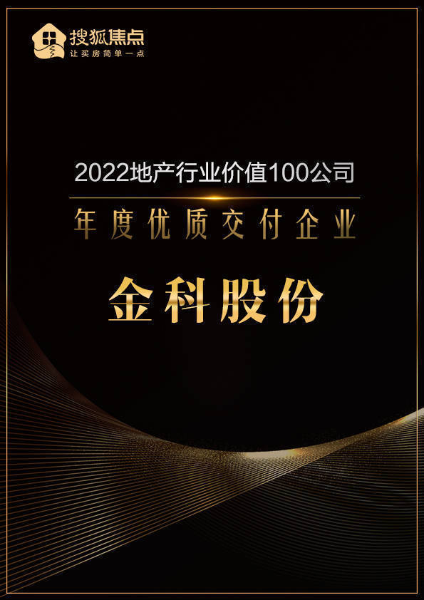 评选结果显示,金科股份获颁2022地产价值100公司“年度优质交付企业”大奖。