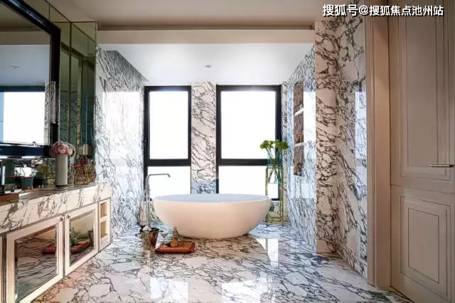 奢华的酒店式卫浴不禁让人“血脉喷张”, 先进大理石及卫浴用具这卫浴够豪,够水准,够大,大的让人心疼。