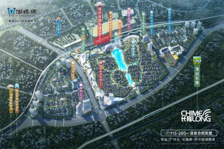 2024年,际华园湖蝶湾获评国家3A级旅游景区称号!项目规划国际化城市商务中心、网红5C汽车生态公园、一站式教育配套、文体娱乐馆、新兴际华医疗康养中心、5A双塔总部基地等,当这一套组合形成之际,这里将与清远长隆形成两大硬核IP,赋新湾区超级文旅带。
