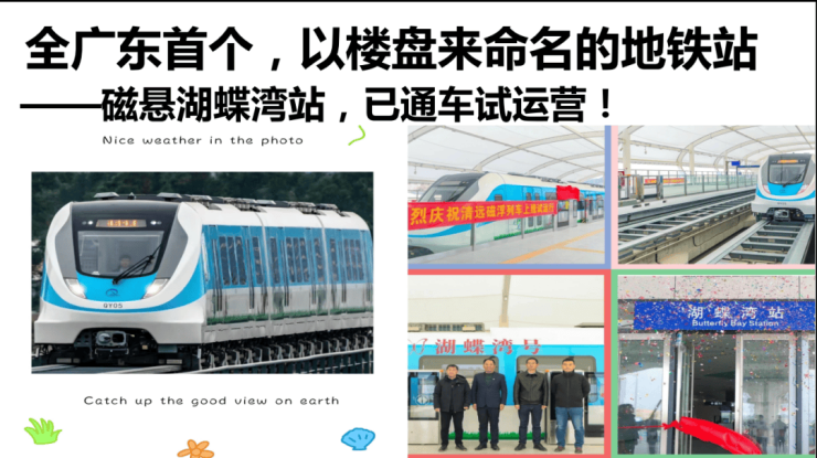 广东省首条中低速磁浮旅游专线已开通,总投资104亿元,磁悬浮湖蝶湾站就在家门口,一站直达清远长隆,地铁18号线换乘9号线直达广州北站,多维交通路网串联湾区。