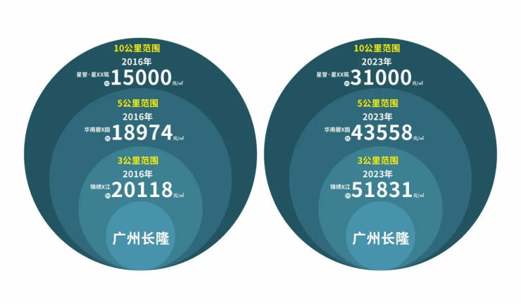 广州番禺长隆区域:从曾经均价仅8000多元/㎡起步,至如今均价54000元+/㎡的当红区域,上涨幅度达惊人的519%;