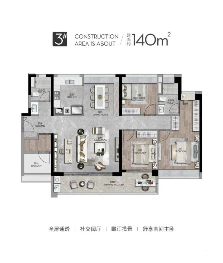 项目约93%的户型实现享受江景资源,头排100%享受一线景观。