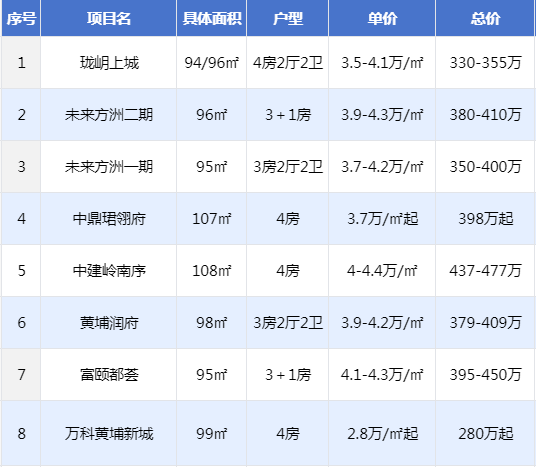 老黄埔新盘的户型设计堪称 “空间魔术”,在有限面积里实现了房间数量和居住舒适度的双重突破,不同预算的购房者都能找到心头好。预算 300 万以内,可关注万科黄埔新城的 99㎡四房户型,不仅做到了四房格局,客厅开间还能达到 4.5 米,且实现南北对流,总价仅 280 万左右,是预算有限且看重学位家庭的优质选择。330-355 万价位段,广州地铁珑岄上城的 94㎡四房两卫户型性价比突出,该户型带入户花园,分横厅和竖厅两种格局,能满足不同家庭的居住习惯。同价位还有未来方洲一期的 95㎡3+1 房,部分楼层可压到 330-350 万,交付为三房,5.4 米开间的客厅可自行隔出一间次卧,灵活适配家庭人口变化。若预算到 380 万以上,华润置地黄埔润府的 98㎡3+1 房值得一看,5 米开间客厅可拓展出书房等灵动空间,成熟地段加持下居住便利性十足;中鼎三期珺翎府107㎡四房 398 万起,得房率高达 120%,实际使用面积接近 130㎡,LDK 一体化布局搭配 6 米奢阔阳台,改善属性拉满;中建岭南序的 108㎡户型更是做到了 5 空间 2 卫,还带独立电梯厅和私享入户,是老黄埔少有的极致户型;富颐华庭95㎡3+1 房 395-420 万,28㎡大客厅、5.9 米宽景阳台和 270 度采光卧室,将空间通透感做到了极致。