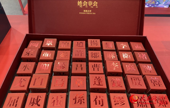 邯郸展区的“姓会幸会”白茶礼盒。 人民网 付兆飒摄