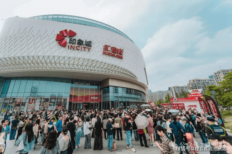 宽约78.8米、高约9.2米的大门,铺装大面积的梵高白奢石和古驰黑石材;四根梵高白立柱托起古铜色铝板;层层抬升,宛若步步登临殿堂。
