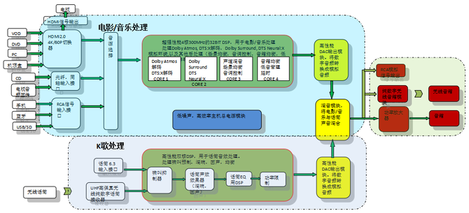 随着娱乐市场的飞速发展,我国大部分娱乐消费者对卡拉OK情有独钟,不论是K歌、聚会、商业洽谈或约会,卡拉OK都是优选去向。电影音视频技术的突飞猛进,使得私人影院可轻松媲美大型院线的效果,甚至观影体验超过大型影院。传统的影音设备配置复杂、体积庞大、接线更是繁琐杂乱,已经顺应不了时代需求,这就直接导致传统的设备不管是在KTV还是私人影院,特别是在影音娱乐一体化的使用中显得捉襟见肘。