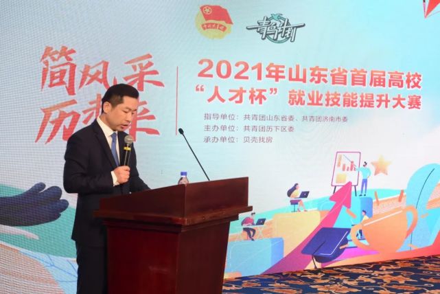 4月21日上午,2021年山东省首届高校“人才杯”就业技能提升大赛启动仪式在山东大厦圆满举办。济南市共青团济南市委学少部部长董玲、共青团历下区委副书记李辉、贝壳找房鲁西省区品牌运营总经理刘磊及省内12所高校相关负责人出席了此次活动。此次大赛旨在提高高校毕业生简历水平及求职技能,增强就业意识,帮助大学生灵活调整职业规划,搭建高校人才培养与社会需求之间的信息桥梁。