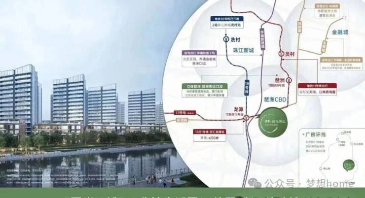 项目距离地铁18号线龙潭站1200米,并临近11号线,双线交汇,通勤珠江新城、琶洲仅需30分钟。