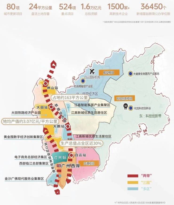 作为大湾区“智造中心”与广州市“西联”要地——白云。广州市十四五规划纲要中“白云”二字被提及60次,位居广州中心五区榜首,计划建设投资总额达到佛山与东莞准一线城市的水平。2021年,各大龙头房企纷纷争先抢驻白云,无不标志着广州西进正当时。
