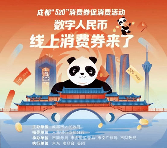 6月10日,成都“520”数字人民币线上消费券即将发放。此次消费券由财政资金与电商平台、数字人民币运营机构(各试点银行)优惠叠加,共计发放1.6亿元,涵盖零售、餐饮、文化、旅游等行业。此次线上消费券将通过京东、唯品会、美团三个电商平台分为三波次进行发放,共计约141万份。6月10日—30日每周五至周日中午12:30开通领券入口,每一活动波次同一消费者可在三个电商平台各领取一张消费券。作为全国数字人民币首批试点地区之一,成都自2019年末启动试点工作以来,在全国首创公共出行数字人民币支付,排名前列特色场景类硬钱包,创新发放政府性补贴,打造了乡村振兴、文旅消费、智慧康养、政务服务等一批特色应用场景,累计试点场景超过91万个。住房公积金贷款、社保缴纳、数字人民币“电子老年证”、“惠蓉宝”数字人民币保费缴纳、地铁公交出行等都可用数字人民币进行支付。