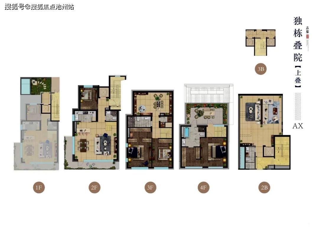上叠,下叠别墅产品实现了独栋化设计,上下双叠均可实现独立入户,独门独院,户户带院,南北双露台,全部配备入户私家电梯,总价800万起,全部赠送精装修。