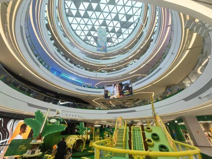 在场景构筑上,打破了原有的空间条件限制,并利用这些限制,将空间分解成相连而独立的路径,形成开放自由的立体慢行系统,从而构筑了项目的诸多的场景特色,结合LED屏的设置来打造公共活动的中心。除了打造时尚自然舒适的立体场景,并且加上适当的空间留白,对后期的商场运营也特别有利。