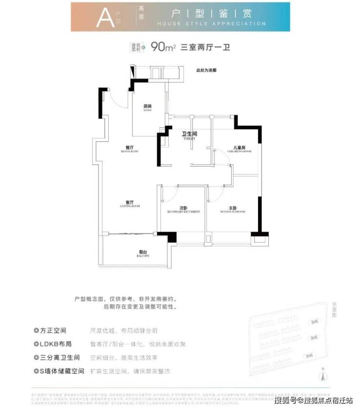 【90㎡户型】三开间朝南,LDKB一体化空间布局。