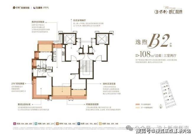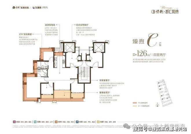 小高层类一梯一户、三阳台设计(部分户型) 、270°无柱飘窗(部分)