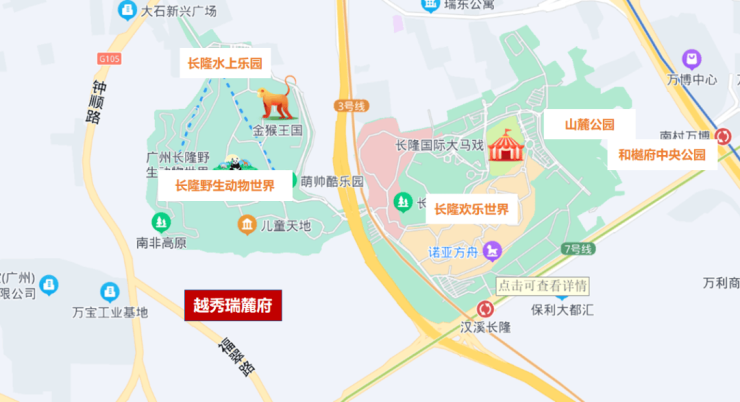 长隆三个主题乐园都在附近,还有飘峰山等山体资源。