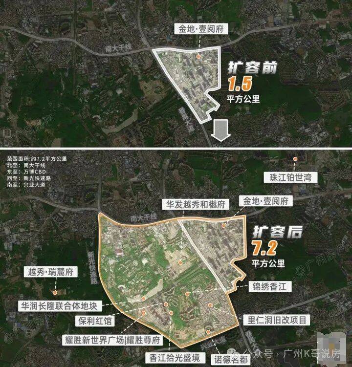 扩容至近五倍,规模赶超6.19平方公里的珠江新城;