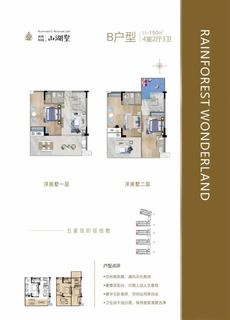 雨林仙境•山湖墅地处“大三亚”旅游经济圈—保亭2023年保亭被授予“中国气候宜居城市(县)”黄金区位 10分钟生活圈配套齐全项目地址:海南·保亭·桃源路与南环路交汇处开发商:保亭仙来谷置业有限公司总占地:600亩规划:高端洋房墅、别墅、城市住宅、五星级酒店、亲子酒店、特色商业街、游泳观光、亲子科普、亲子乐园、大型超市、儿童娱乐、多功能会客厅、有机饭店、特色农场分四期开发:一二三四期目前在售:一期(山湖墅组团)一期总占地:3.3万㎡一期总建筑面积:5万㎡在售一期总楼栋:16栋(不含商铺)在售一期总户数:约286户(不含商铺和别墅)一期容 积 率:0.88一期绿 化 率:40%在售一期楼栋:1号楼、2号楼、3号楼、4号楼、5号楼建筑形态:洋房别墅(现代新中式风格)