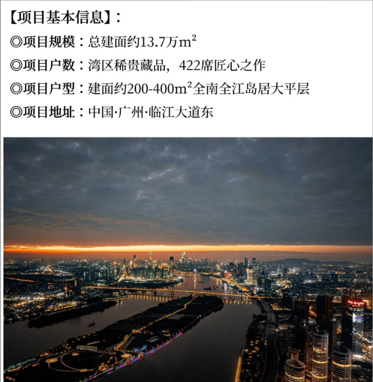 位于广州鹏瑞一号旁,享受全南全江景资源,是全广州珠江前航道上,唯二的三江汇流景观(另一个是白鹅潭悦府楼王),而且项目不止于三江汇流,更有壮阔的珠江入海景观!鱼珠岛作为市中心唯一仅有的临江半岛,创造了珠江前航道唯一再次拥有岛居豪宅的机会。
