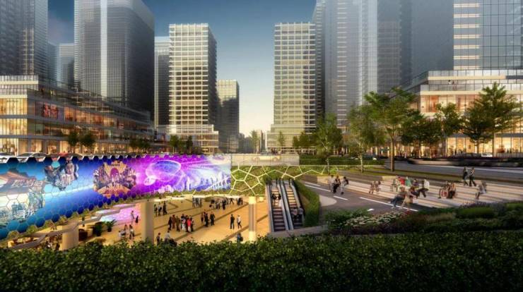 项目将海绵城市、绿色建筑三星等标准以及国际潮流和岭南文化特色融入设计,定位打造为甲级商务写字楼。