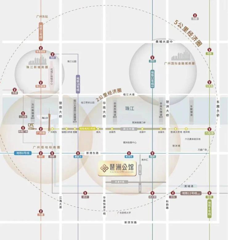 广州城投·琶洲公馆是位于琶洲·新港东路608号,即地铁8号线新港东站D出口约120米直达。