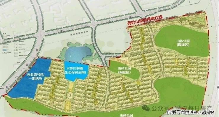 光谷壹号院隶属于占地近千亩的光谷荷叶山项目。整个荷叶山地块不仅涵盖光谷壹号院、武汉桃花源两大住宅组团,还坐拥“三山一湖”——约265亩的原生山林与湖泊,体量与生态浓度远超同期项目。其中,光谷壹号院就位于地块西侧紧邻光谷一路的核心位置。