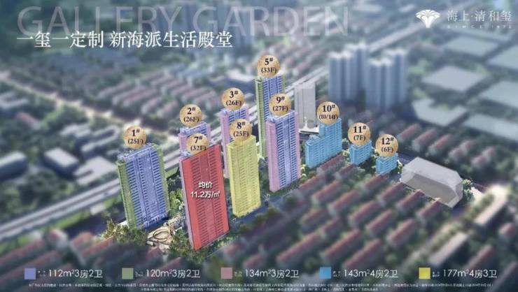 可售住宅达到17万方,容积率3.12,由10栋6-33层的洋房+高层组成,规划了835套住宅,主力户型112-177平3-4房,入门就是1200万起步。