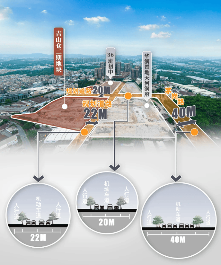 项目还会配建一个公交站,方便片区居民出行,而且,华润置地还会修建道路,拓宽茅岗路北延段(由原来的单向2车道,拓宽成40米双向6车道),之前困扰已久的这条路,届时通车后进出不便的难题,将大幅得到缓解。