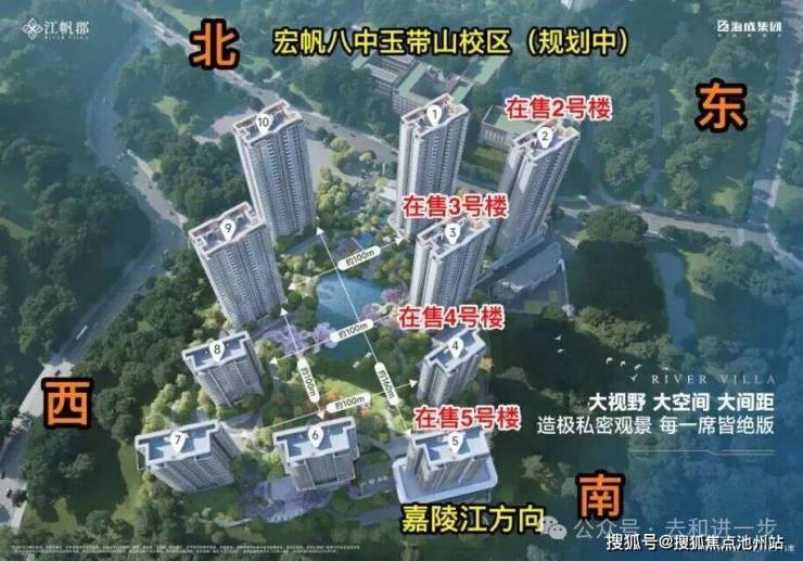 三大公园,巴人汲水公园(项目左侧无缝接驳)占地4.2万方,盘溪河滨江公园,位于项目前方北滨路下端,全长约1.8km,徐悲鸿艺术公园(规划中),位于项目背后的半山公园约4.5万。