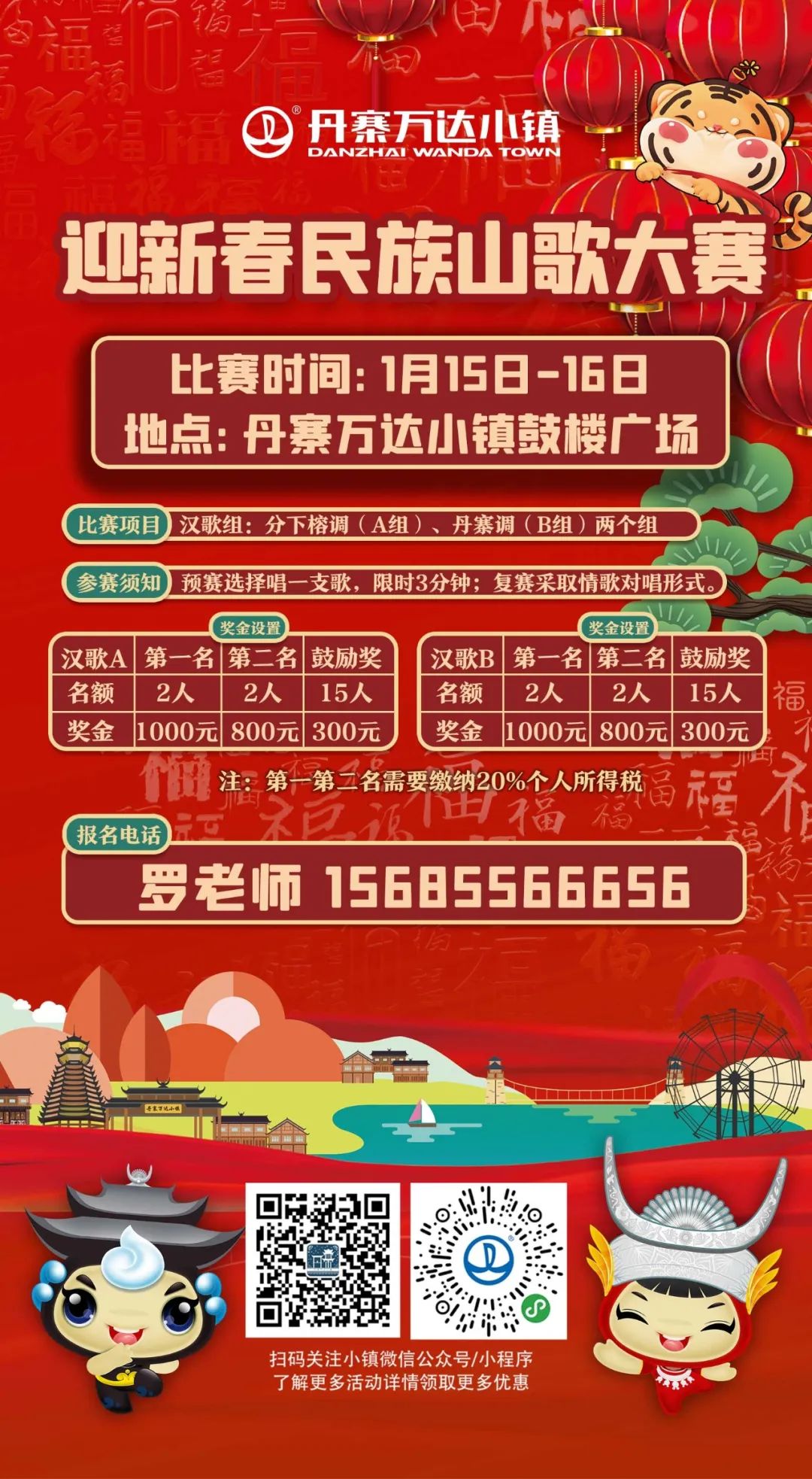 来小镇唱山歌、赢奖金,听苗侗阿哥阿妹用山歌来表达情意,用山歌展现新年喜悦。大家一起唱!唱给大家听!现在便拨打电话报名吧!